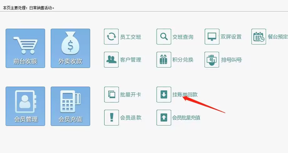 美萍餐饮专家 会员挂账怎么回款?有一个挂账汇款的按钮如图示。怎么还款?点欠款的单据,会出现还款按钮